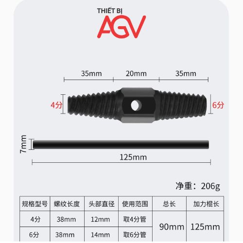 Quy cách đóng gói: 01 mũi khoan mở ống nước gãy + 01 thanh trợ lực mở ống nước gãy